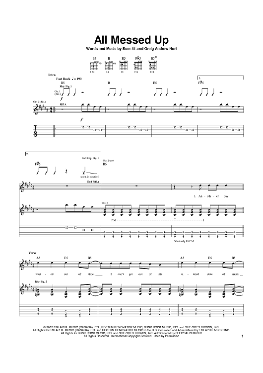 Digital Sheet Music for All Messed Up by Greig Andrew Nori, Sum 41 scored for Guitar Tab; id:371063