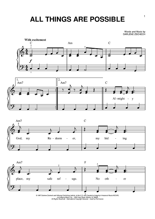 Digital Sheet Music for All Things Are Possible by Darlene Zschech scored for Easy Piano; id:391311