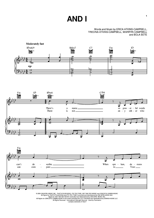 Digital Sheet Music for And I by Mary Mary, Erica Atkins-Campbell, Trecina Atkins-Campbell, Warryn Campbell, Bola Sete scored for Piano/Vocal/Chords; id:388927