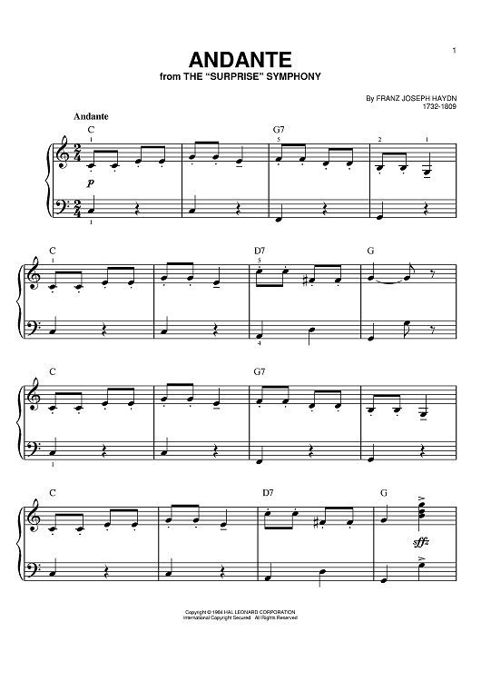 Digital Sheet Music for Andante by Franz Joseph Haydn scored for Easy Piano; id:393686