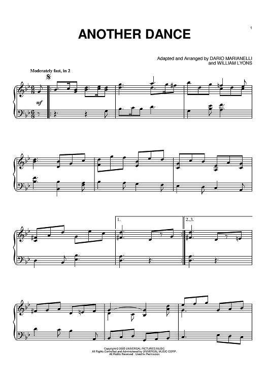 Digital Sheet Music for Another Dance by William Lyons, Dario Marianelli scored for Piano; id:389121