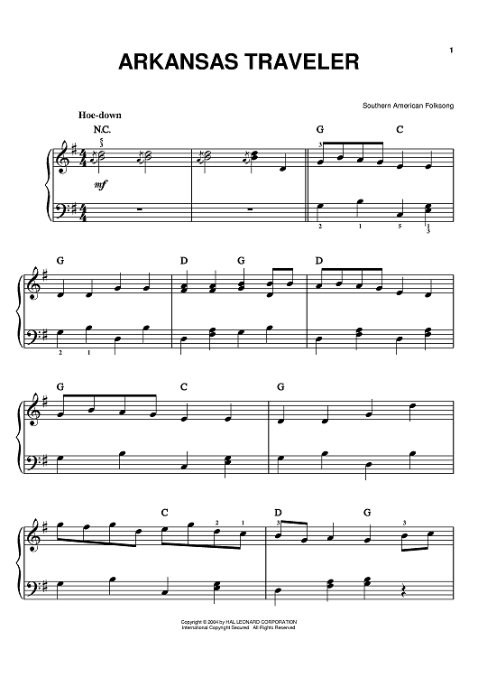 Digital Sheet Music for Arkansas Traveler by scored for Easy Piano; id:373825