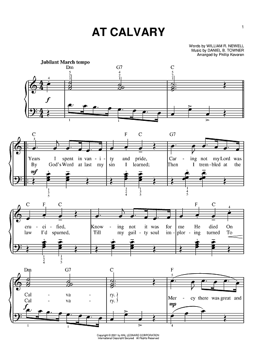 Digital Sheet Music for At Calvary by Daniel B. Towner, Phillip Keveren, William R. Newell scored for Easy Piano; id:382211