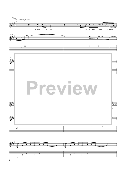 Digital Sheet Music for Back To You by John Mayer scored for Guitar Tab; id:371474