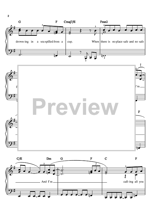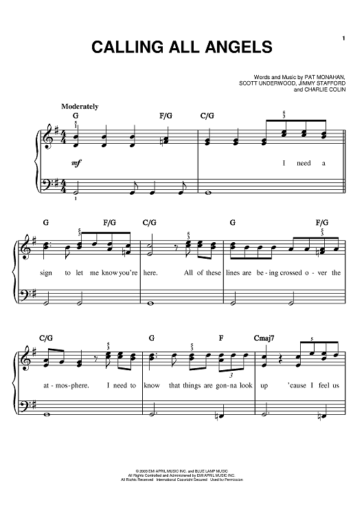 Digital Sheet Music for Calling All Angels by Scott Underwood, Pat Monahan, Train, James Stafford scored for Easy Piano; id:372724