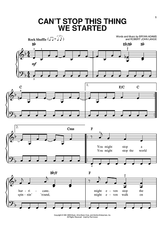 "Can't Stop This Thing We Started" Sheet Music by Bryan Adams