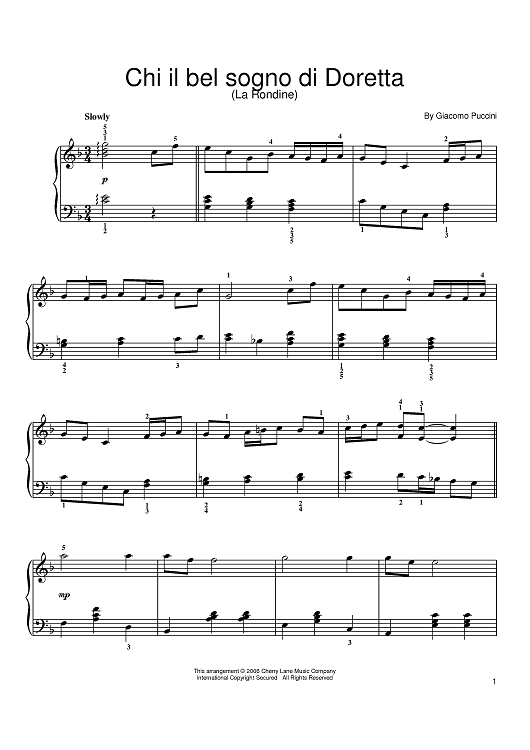 Digital Sheet Music for Canzone di Doretta by Giacomo Puccini scored for Easy Piano; id:391282