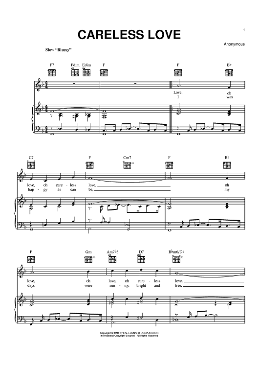 Digital Sheet Music for Careless Love by Unknown Writer scored for Piano/Vocal/Chords; id:368309