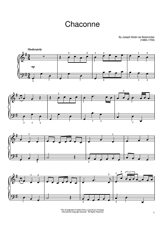 Digital Sheet Music for Chaconne by Joseph Bodin de Boismortier scored for Easy Piano; id:402844