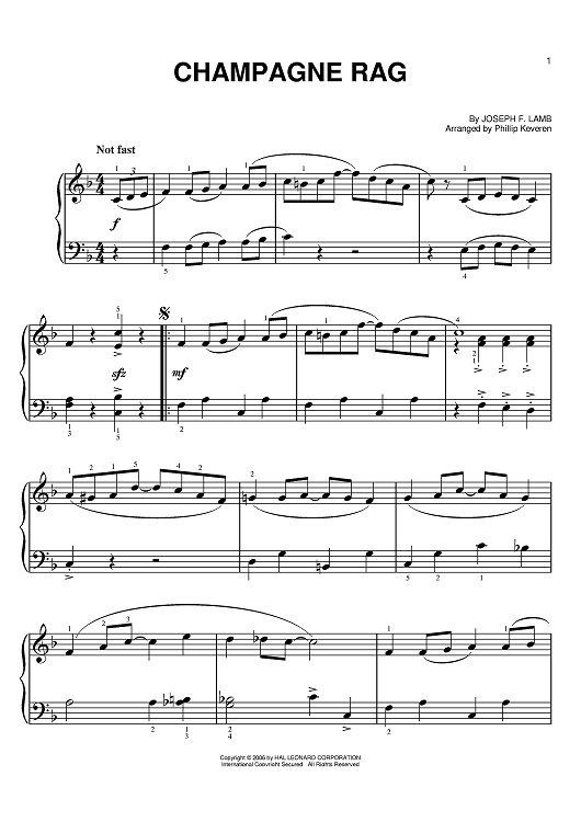 Digital Sheet Music for Champagne Rag by Joseph F. Lamb, Phillip Keveren scored for Easy Piano; id:388639
