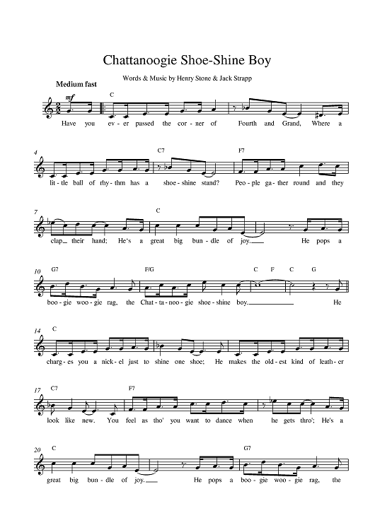 Digital Sheet Music for Chattanoogie Shoe-Shine Boy by Glenn Miller, STONE And STAPP scored for Lead Sheet; id:380713