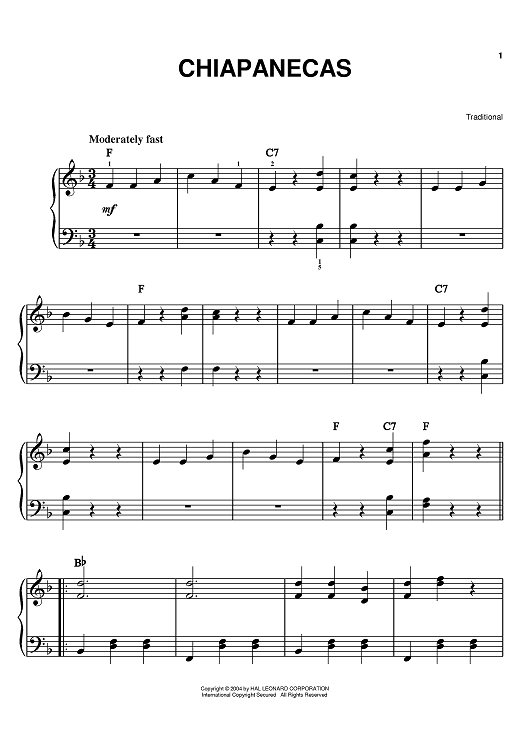 Digital Sheet Music for Chiapanecas by scored for Easy Piano; id:373832