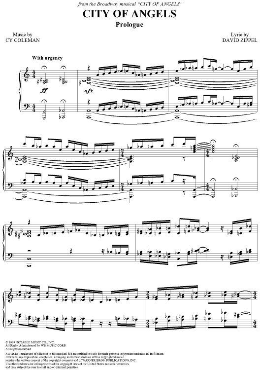 "City of Angels (Prologue)" Sheet Music by Cy Coleman