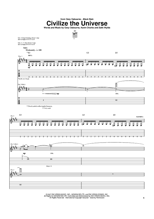 Digital Sheet Music for Civilize The Universe by Kevin Churko, Ozzy Osbourne, Zakk Wylde scored for Guitar Tab; id:402658