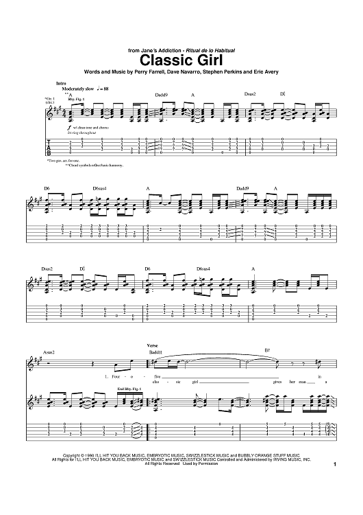 Digital Sheet Music for Classic Girl by Perry Farrell, Jane's Addiction, Dave Navarro, Stephen Perkins scored for Guitar Tab; id:373661