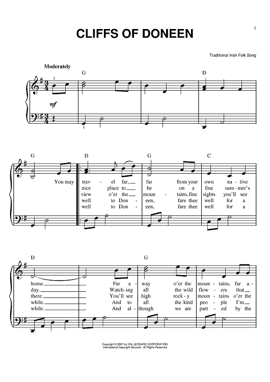 Digital Sheet Music for Cliffs Of Doneen by scored for Easy Piano; id:397272