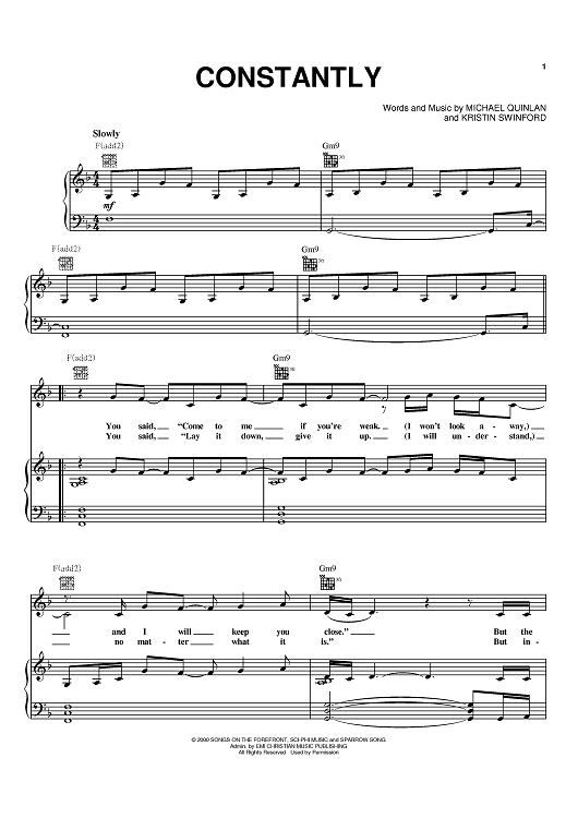 Digital Sheet Music for Constantly by Michael Quinlan, Kristin Swinford scored for Piano/Vocal/Chords; id:367556