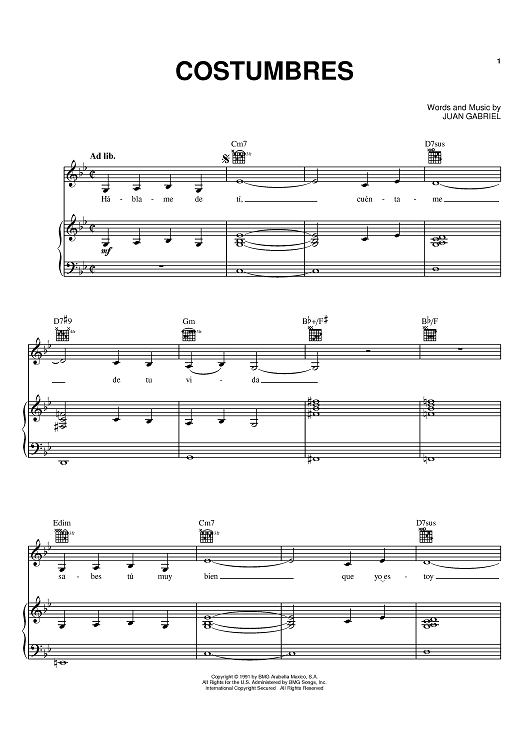 "Costumbres" Sheet Music by Juan Gabriel