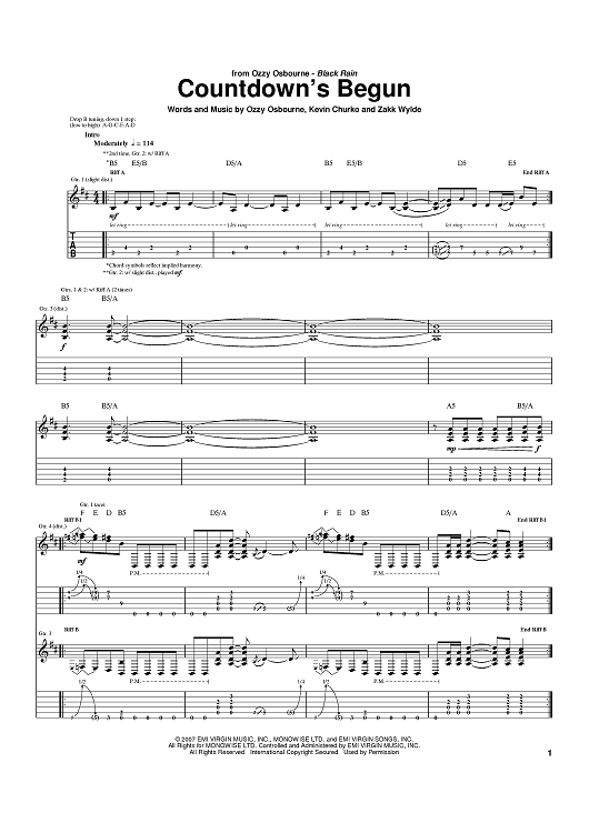 Digital Sheet Music for Countdown's Begun by Kevin Churko, Ozzy Osbourne, Zakk Wylde scored for Guitar Tab; id:402659