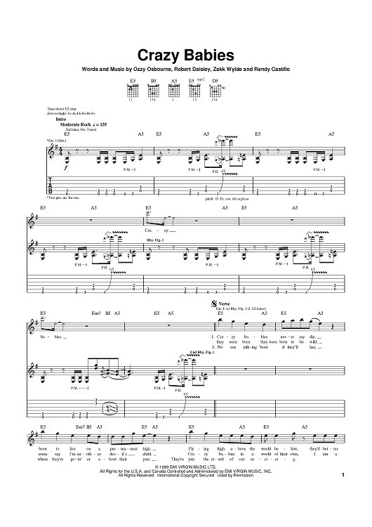 "Crazy Babies" Sheet Music by Ozzy Osbourne
