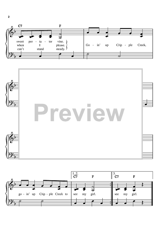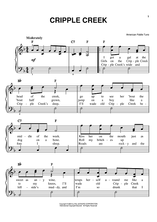 Digital Sheet Music for Cripple Creek by scored for Easy Piano; id:373836