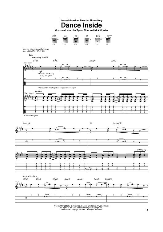 Digital Sheet Music for Dance Inside by Tyson Ritter, Nick Wheeler scored for Guitar Tab; id:388183