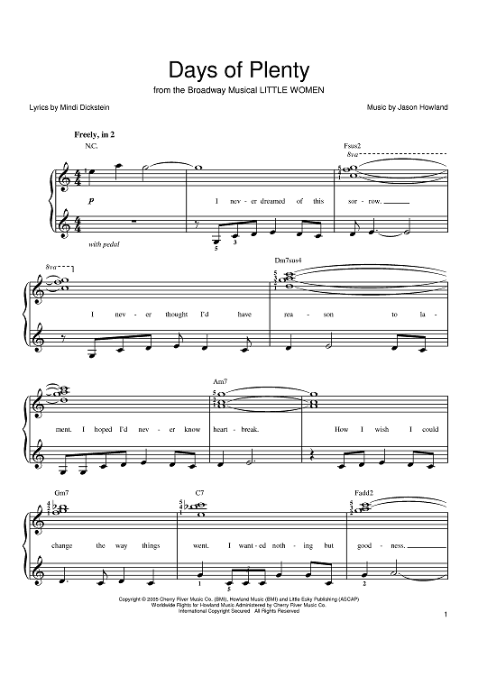 Digital Sheet Music for Days Of Plenty by Mindi Dickstein, Jason Howland scored for Easy Piano; id:387583