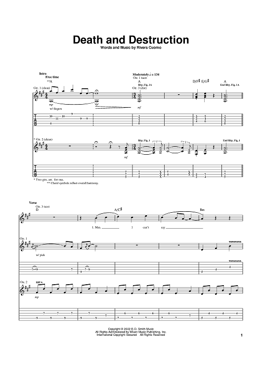 Digital Sheet Music for Death And Destruction by Rivers Cuomo, Weezer scored for Guitar Tab; id:369935