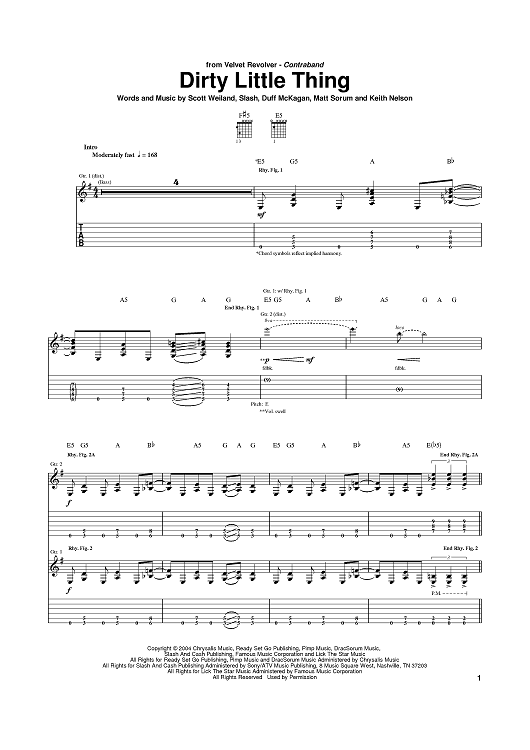 Digital Sheet Music for Dirty Little Thing by Scott Weiland, Keith Nelson, Slash, Duff McKagan, Matt Sorum, Velvet Revolver scored for Guitar Tab; id:383516