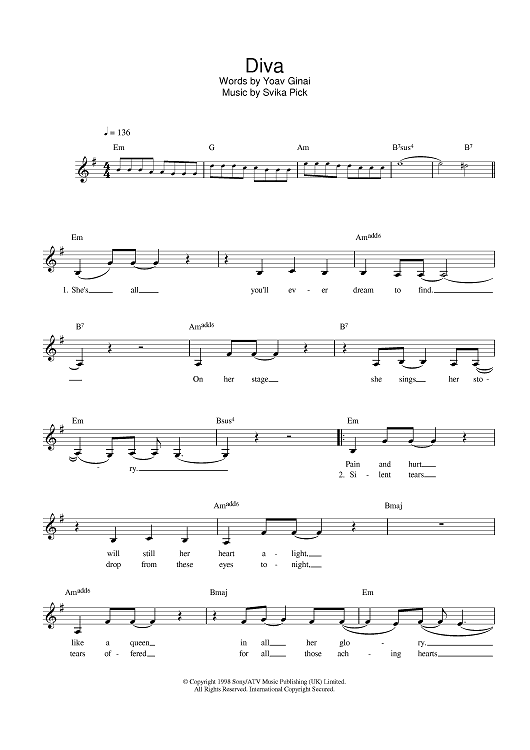 Digital Sheet Music for Diva by Dana International scored for Lead Sheet; id:376690