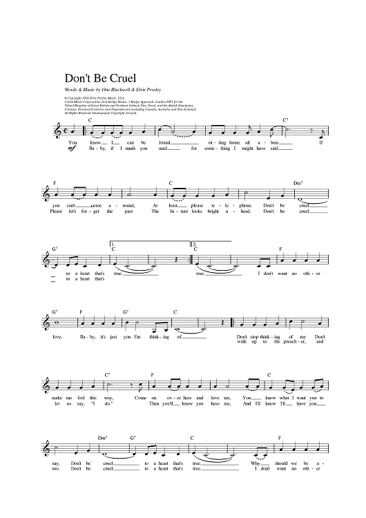 "Don't Be Cruel" Sheet Music by Elvis Presley