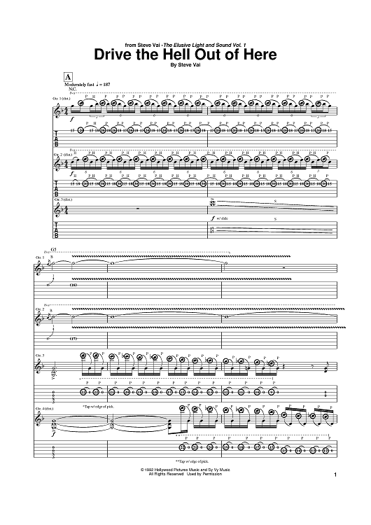 Digital Sheet Music for Drive The Hell Out Of Here by Steve Vai scored for Guitar Tab; id:374651