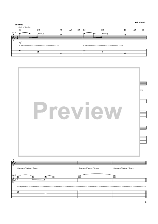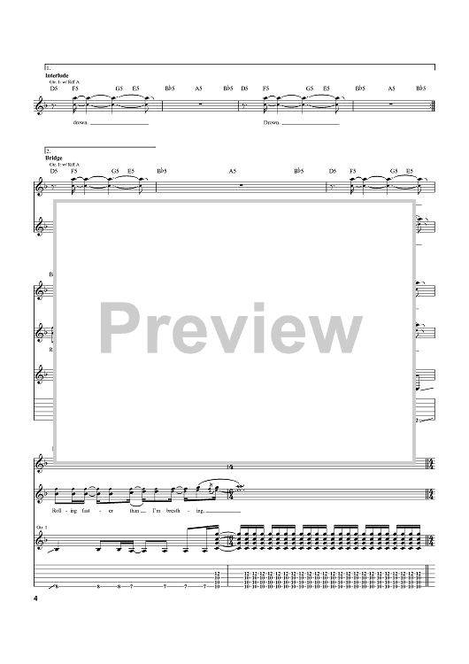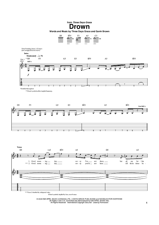 Digital Sheet Music for Drown by Golden Brown, Three Days Grace scored for Guitar Tab; id:373632