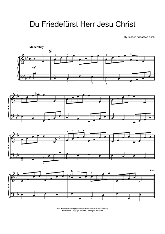 Digital Sheet Music for Du Friedefurst Herr Jesu Christ by Johann Sebastian Bach scored for Easy Piano; id:385671