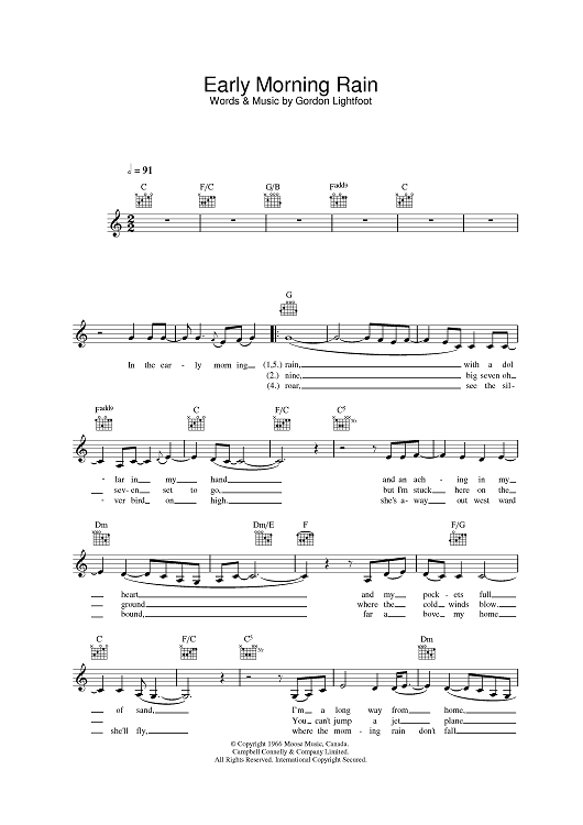 Digital Sheet Music for Early Morning Rain by Eva Cassidy scored for Lead Sheet; id:378730