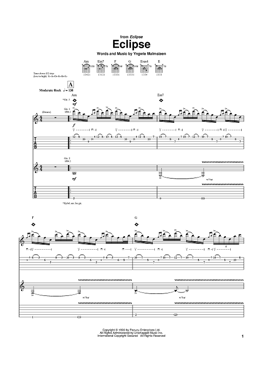 Digital Sheet Music for Eclipse by Yngwie Malmsteen scored for Guitar Tab; id:373379