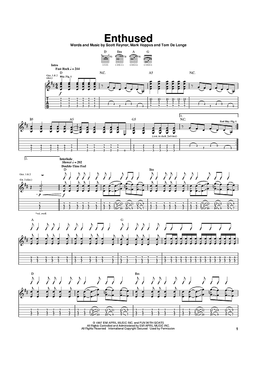 Digital Sheet Music for Enthused by Mark Hoppus, blink-182, Tom DeLonge, Scott Raynor scored for Guitar Tab; id:370581