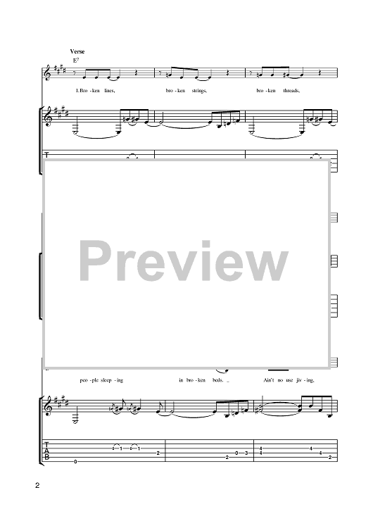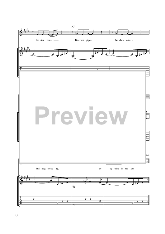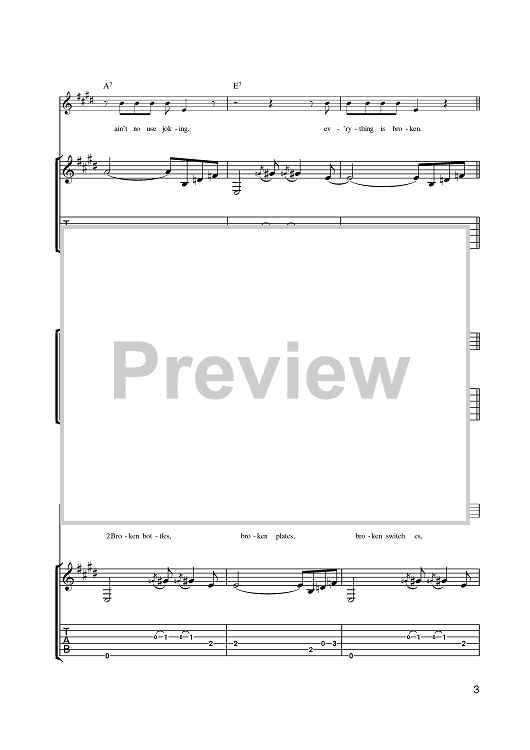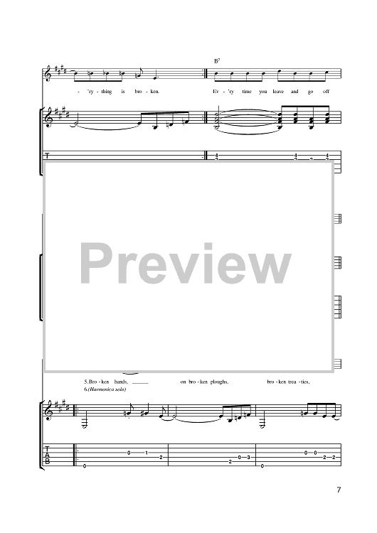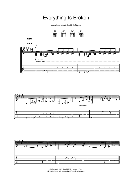 Digital Sheet Music for Everything Is Broken by Bob Dylan scored for Guitar Tab; id:401168