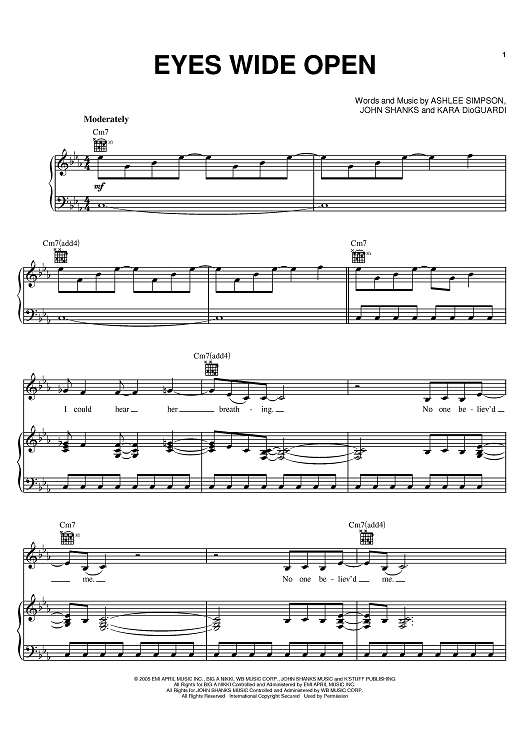 Digital Sheet Music for Eyes Wide Open by John Shanks, Kara DioGuardi, Ashlee Simpson scored for Piano/Vocal/Chords; id:388623