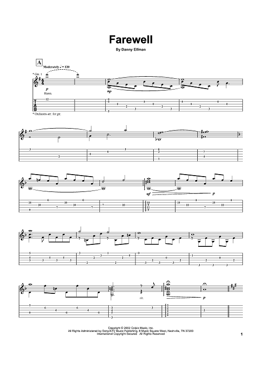 Digital Sheet Music for Farewell by Danny Elfman scored for Guitar Tab; id:369307