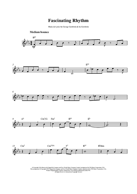 Digital Sheet Music for Fascinating Rhythm by George Gershwin, Ira Gershwin, Fred Astaire, Benny Goodman scored for Lead Sheet; id:380761
