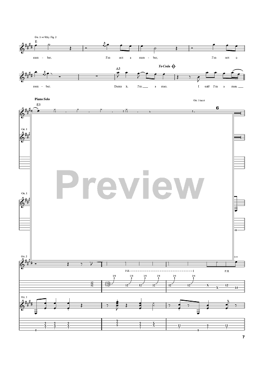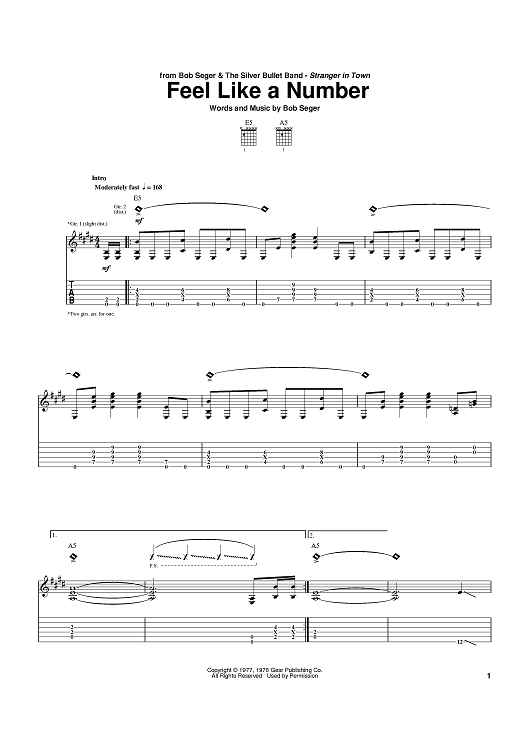 Digital Sheet Music for Feel Like A Number by Bob Seger scored for Guitar Tab; id:371897