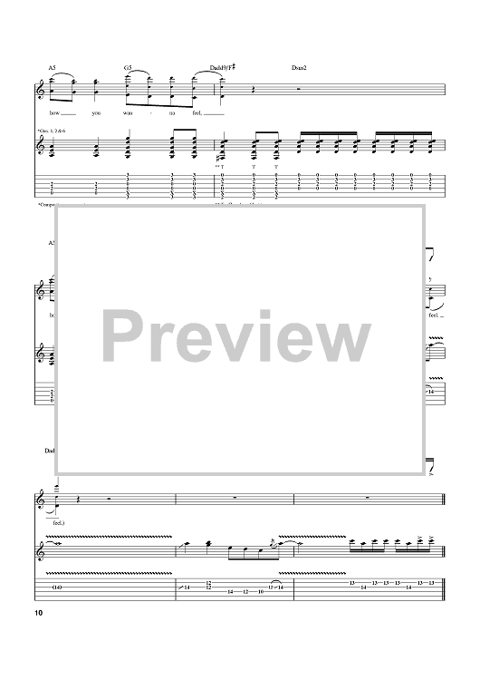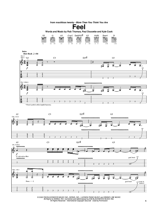 Digital Sheet Music for Feel by Matchbox Twenty, Rob Thomas, Paul Doucette, Kyle Cook scored for Guitar Tab; id:372474