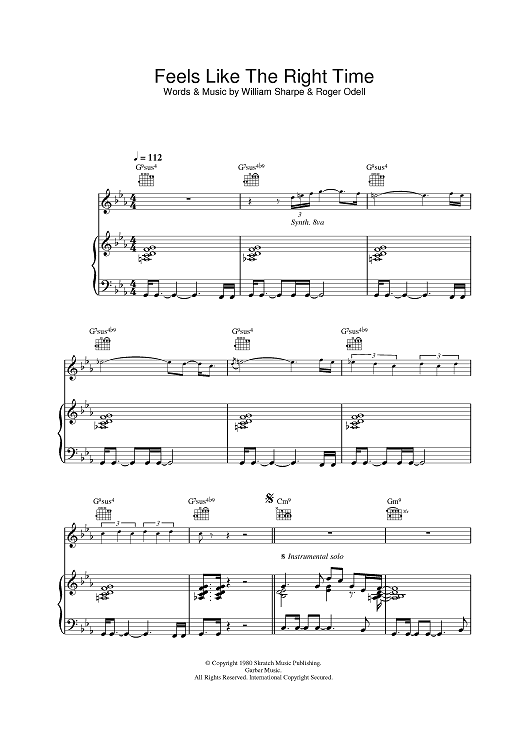Digital Sheet Music for Feels Like The Right Time by Roger Odell, Shakatak, William Sharpe scored for Piano/Vocal/Chords; id:401956