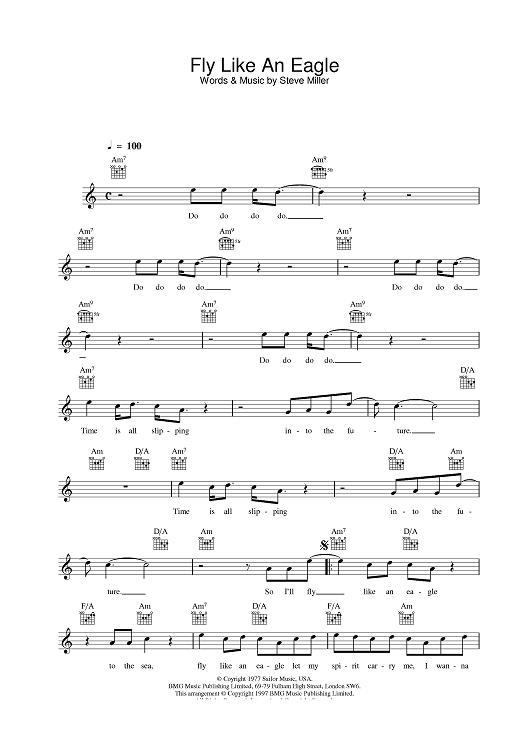 "Fly Like An Eagle" Sheet Music by Steve Miller Band