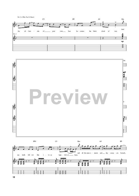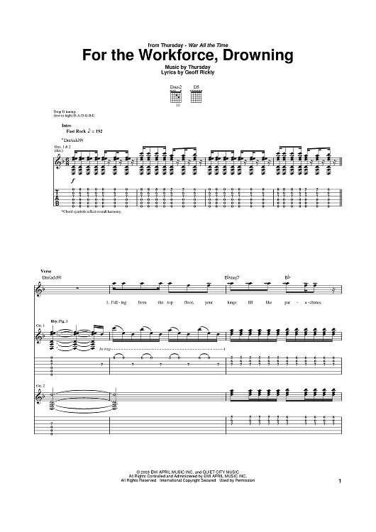Digital Sheet Music for For The Workforce, Drowning by Geoff Rickly, Thursday scored for Guitar Tab; id:373452
