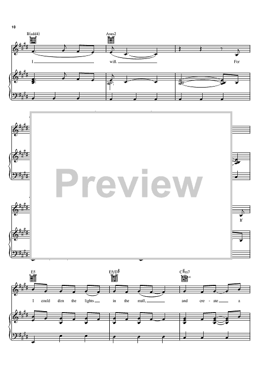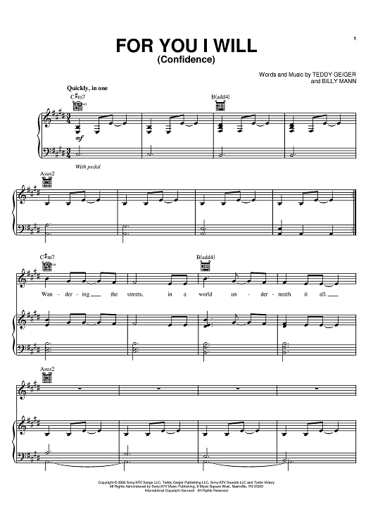 Digital Sheet Music for For You I Will (Confidence) by Billy Mann, Teddy Geiger scored for Piano/Vocal/Chords; id:389402