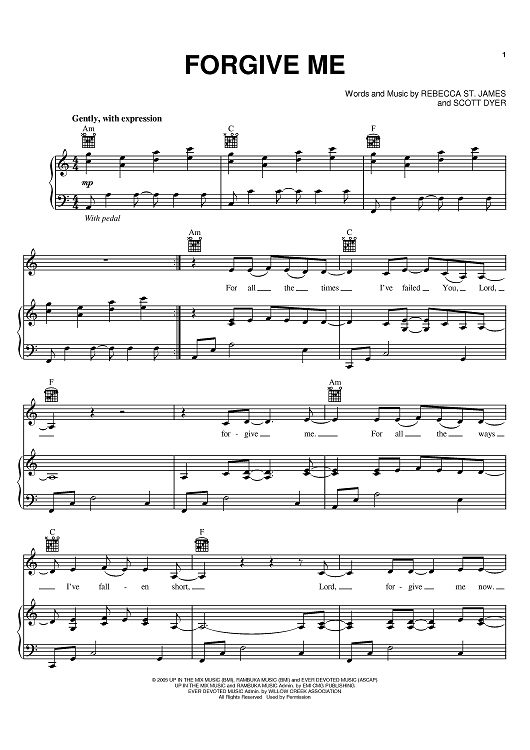 Digital Sheet Music for Forgive Me by Rebecca St. James, Scott Dyer scored for Piano/Vocal/Chords; id:388392