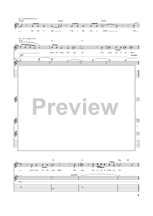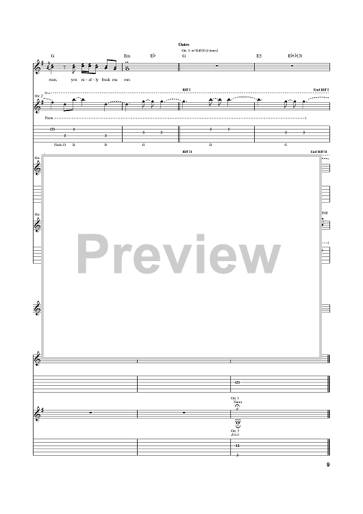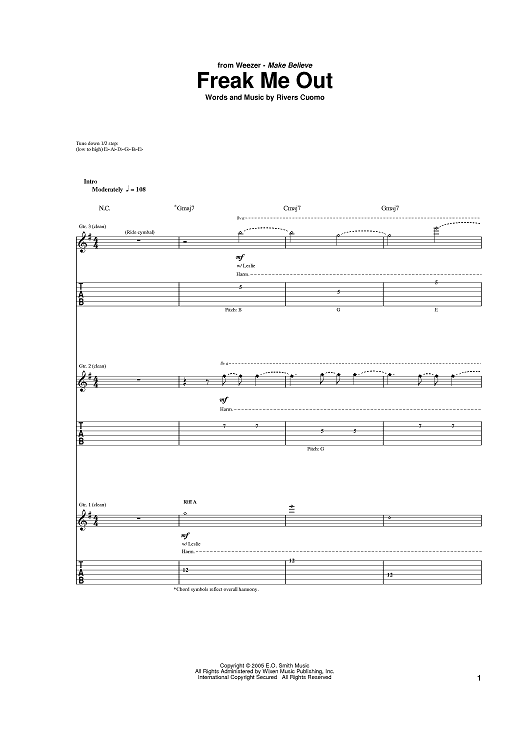 Digital Sheet Music for Freak Me Out by Rivers Cuomo, Weezer scored for Guitar Tab; id:386473
