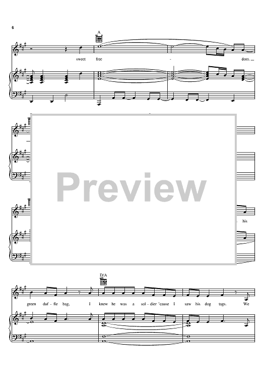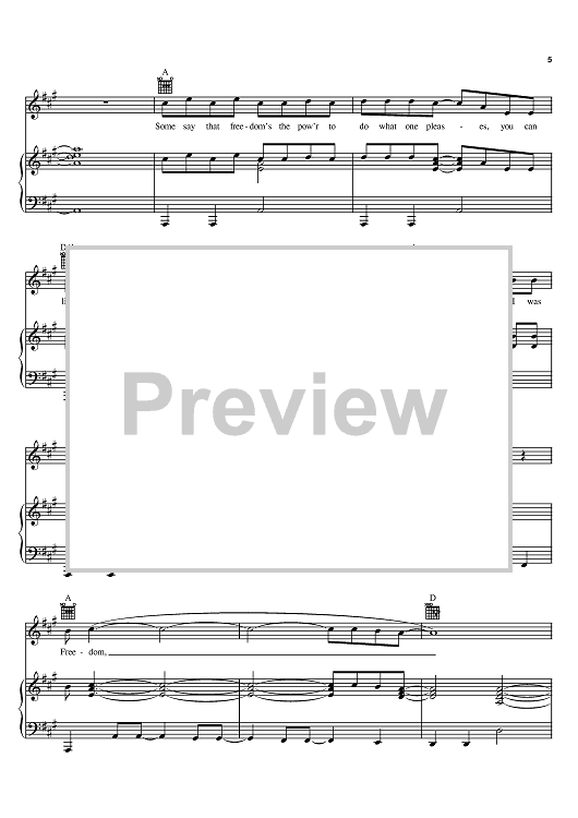 Digital Sheet Music for Freedom by Kenny Chesney, Tom Douglas, William C. Luther scored for Piano/Vocal/Chords; id:389002